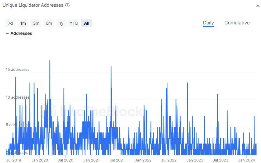 Furthermore, by tracking the number of unique liquidators, DeFi protocols can better understand the distribution of risk, and take appropriate measures to ensure the stability and security of the protocol.