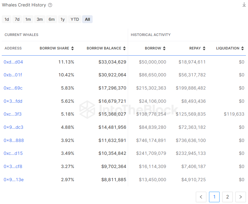 Furthermore, the current borrow share allows liquidators and lenders to predict scenarios of whales being liquidated.