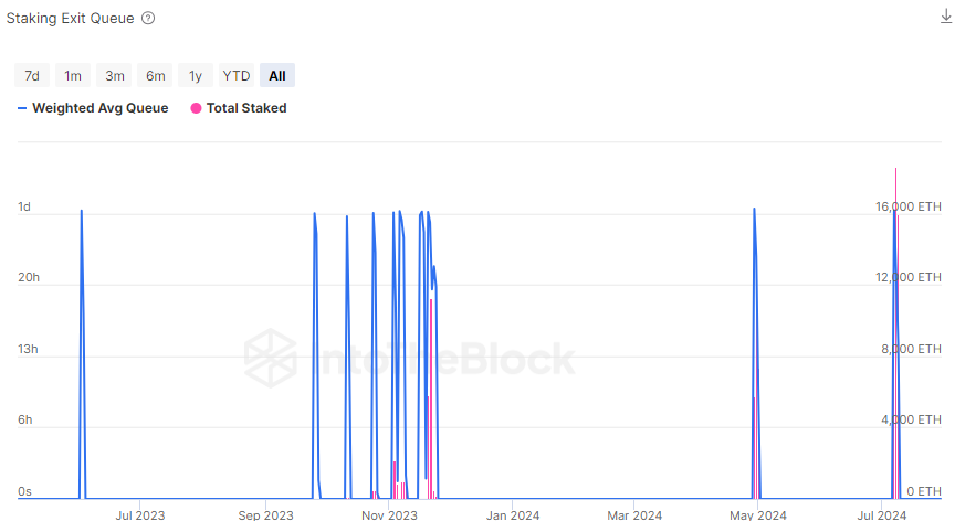 Use this indicator to plan the timing of your unstaking. If the projected exit time is short, it may be an opportune moment to exit staking if you require liquidity. By monitoring this indicator, you can determine the best time to initiate the unstaking process to meet your financial needs. Conversely, a long projected exit time may indicate high demand for exiting staking, potentially reflecting broader market concerns or a shift in investor sentiment.