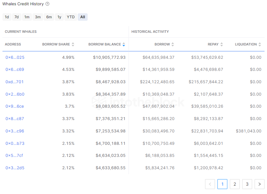 Furthermore, the current borrow share allows liquidators and lenders to predict scenarios of whales being liquidated.