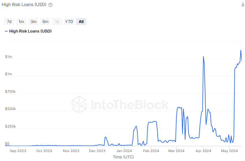 A loan within just 5% of liquidation is considered to be highly risky, as there is a higher likelihood that the loan will be liquidated if the value of the collateral decreases or the loan asset increases in price.
