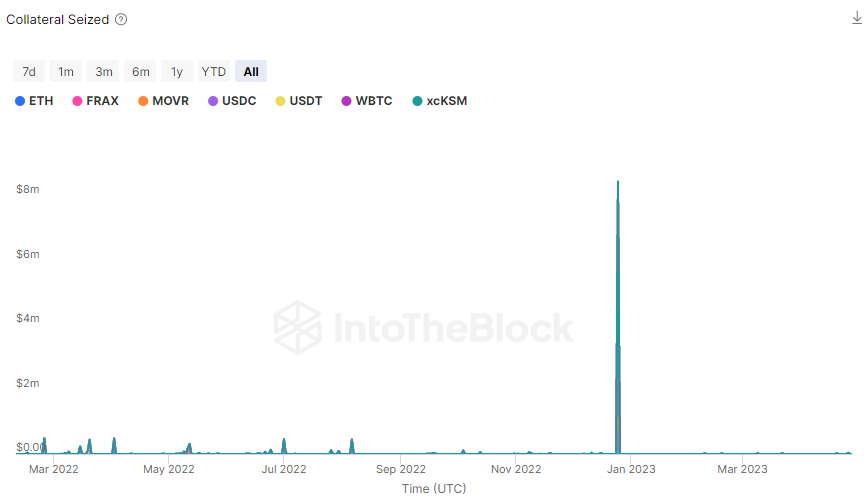 This indicator shows the total amount of each collateral asset being seized for liquidation. If a borrower has more than one asset as collateral for their loan, liquidators get to choose which asset they will seize in order to repay their debt and keep the protocol safe.