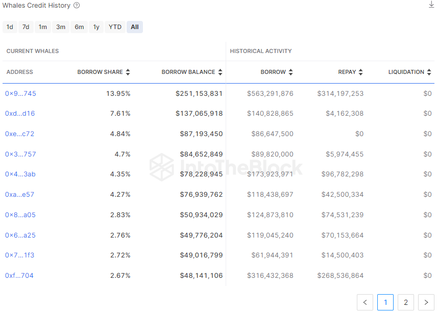 Furthermore, the current borrow share allows liquidators and lenders to predict scenarios of whales being liquidated.